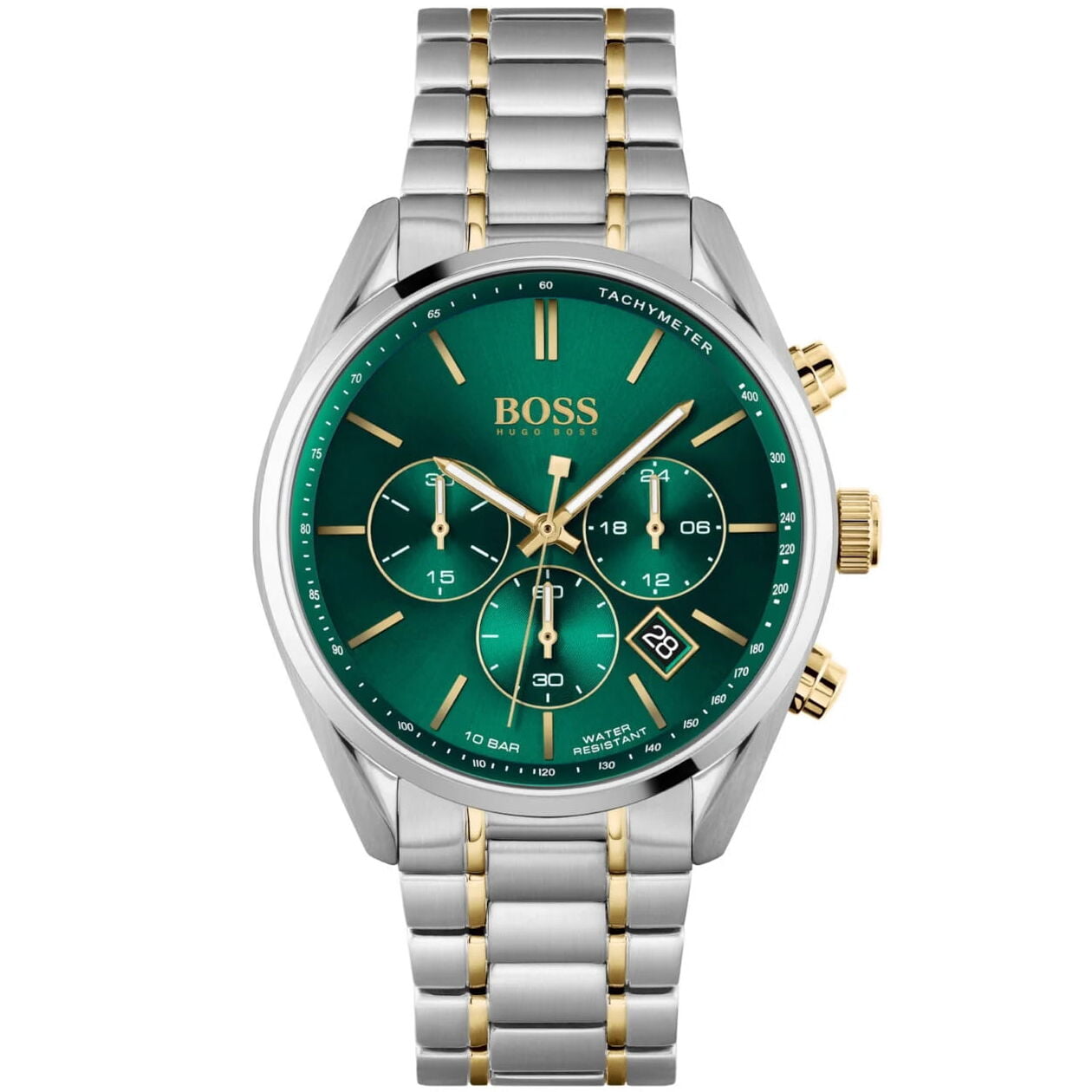 De unieke kleurencombinatie van de groen wijzerplaat met goude tinten voegt een vleugje moderniteit en luxe toe. Het mineraalglas beschermt niet alleen de wijzerplaat, maar voegt ook een subtiele glans toe aan het horloge. De zilver- en goudkleurige metalen band, in perfecte harmonie met de kast, geeft het horloge een verfijnde uitstraling.